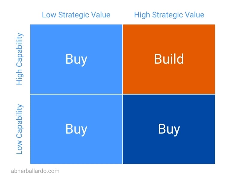Build what’s core—what creates unique value. Buy everything else that supports operations but doesn’t differentiate.