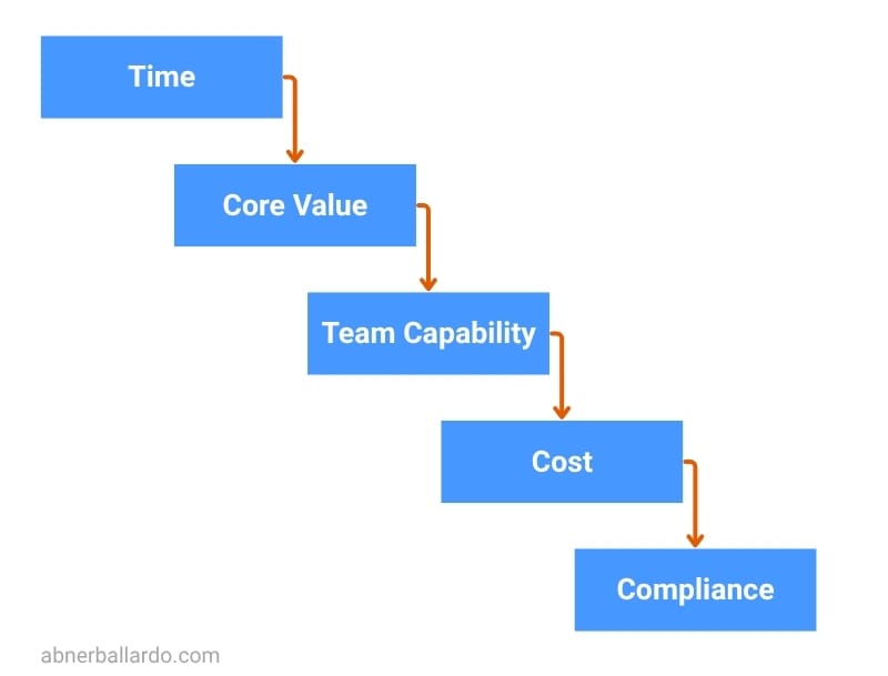 2. Core vs. Commodity: Ask: is this system central to our unique value proposition? If not, consider buying. Save your engineering focus for what sets you apart.