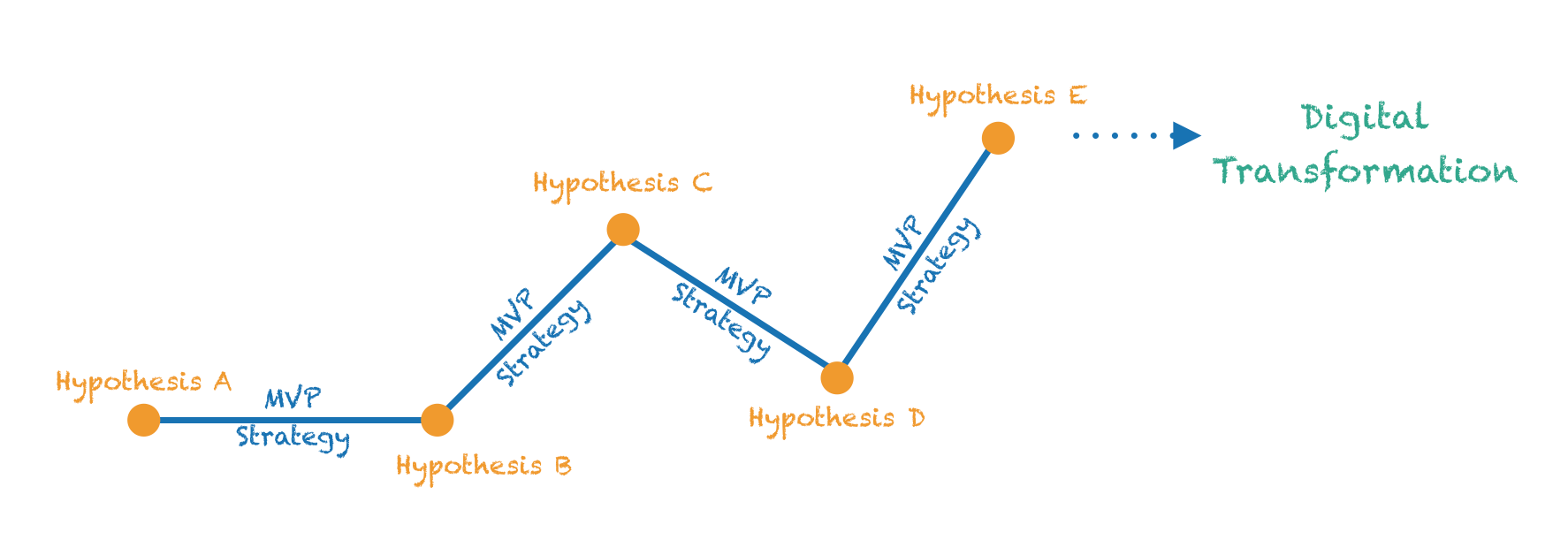 Eric Ries, the author of Lean Startup, recommends to define a hypothesis about your business idea, build a small version of your product (MVP) to confirm it, and learn all you can about your customers. If you adapt that technique, you will have to define a Digital Transformation Hypothesis and execute an MVP Strategy to learn about people and culture in your organization. It is unlikely that you will find the holy grail of Digital Transformation on the first try. For that reason, get used to executing, measuring results, learning from what works or doesn’t work, and adapting.